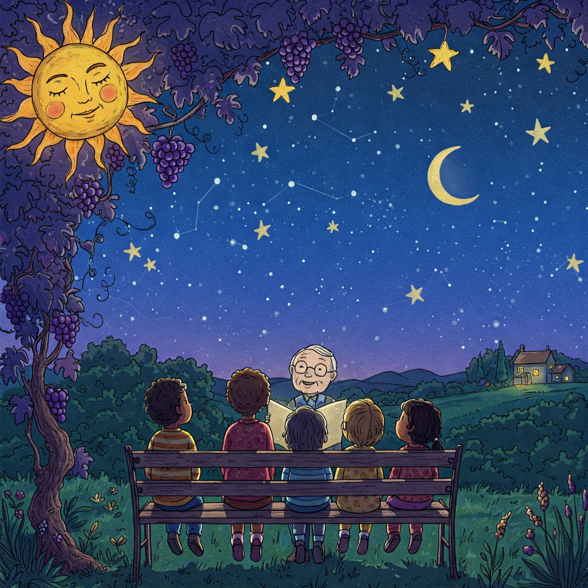記得在童年的時候;每到夏晚,總愛在院內葡萄架下,搬一條長凳,同弟妹們排排的坐在老祖母身旁;聽她老人家講一些陳年古怪的故事。 她老人家總是笑咪咪的,揮著寬大的葵扇,指著天空中那些明亮的星星說:古今來的英雄美人,都是應著天上的星宿下凡的。